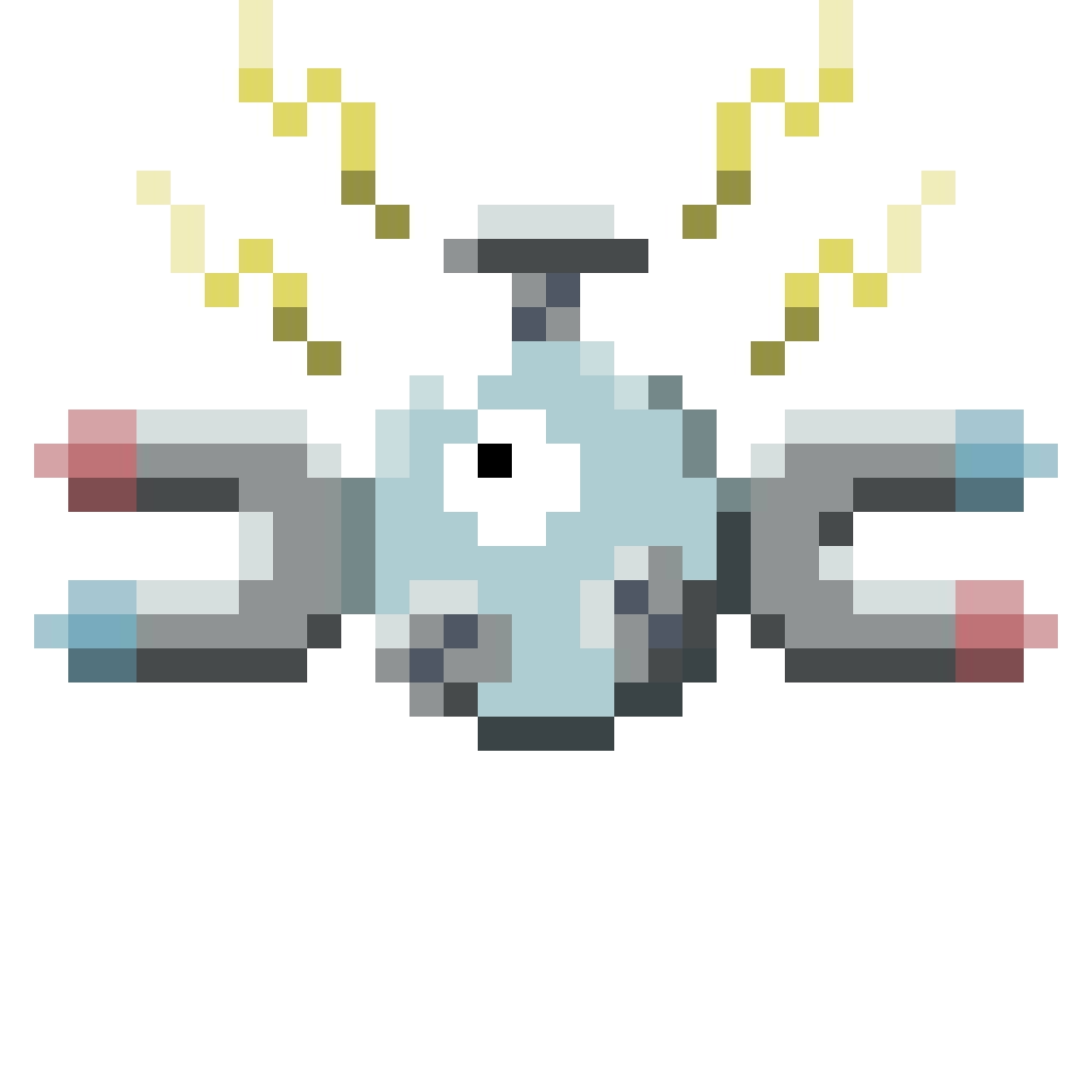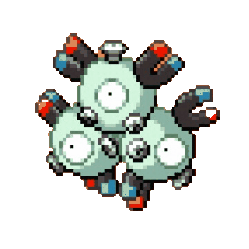 Três Magnemite estão ligados por uma forte força magnética. Dores de ouvido ocorrerão se você chegar muito perto.